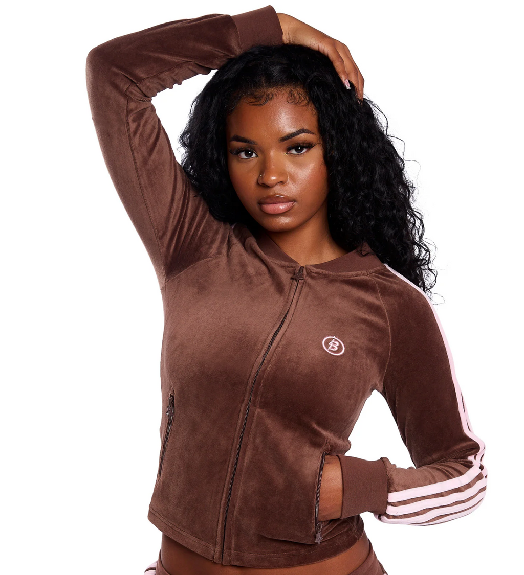 BODY VELOUR TRACK JACKET (BROWN/PINK)